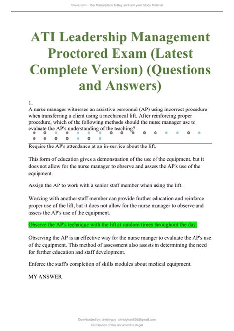 Read ATI LEADERSHIP MANAGEMENT PROCTORED EXAM Paperback Gutenberg